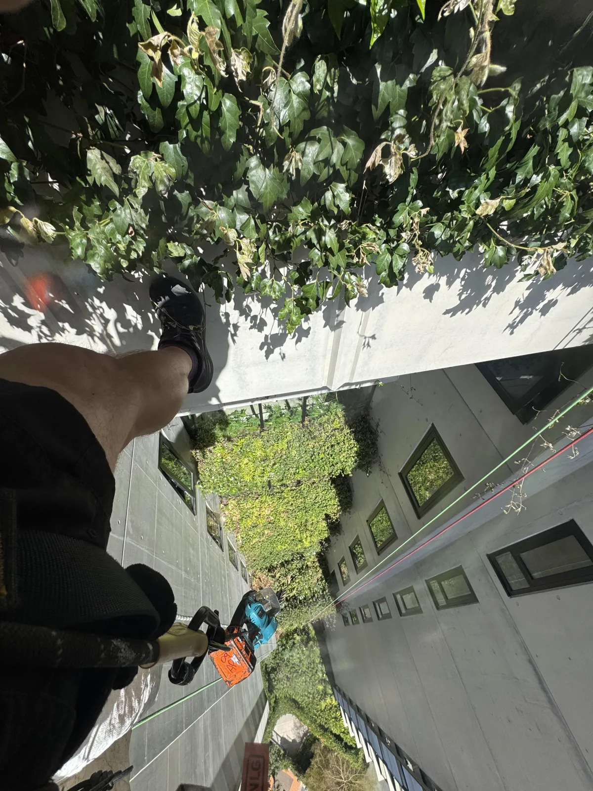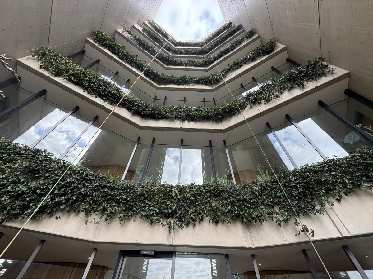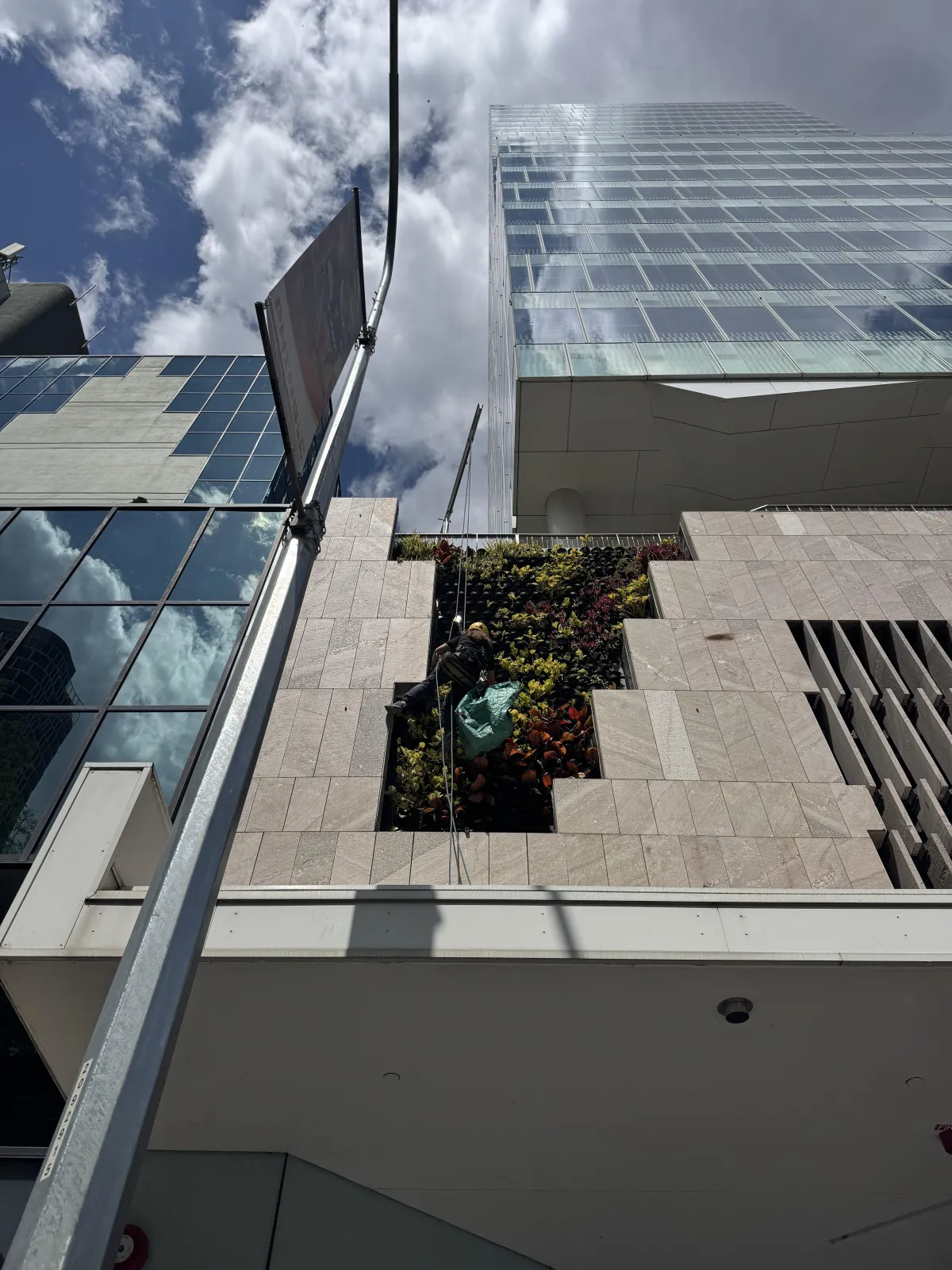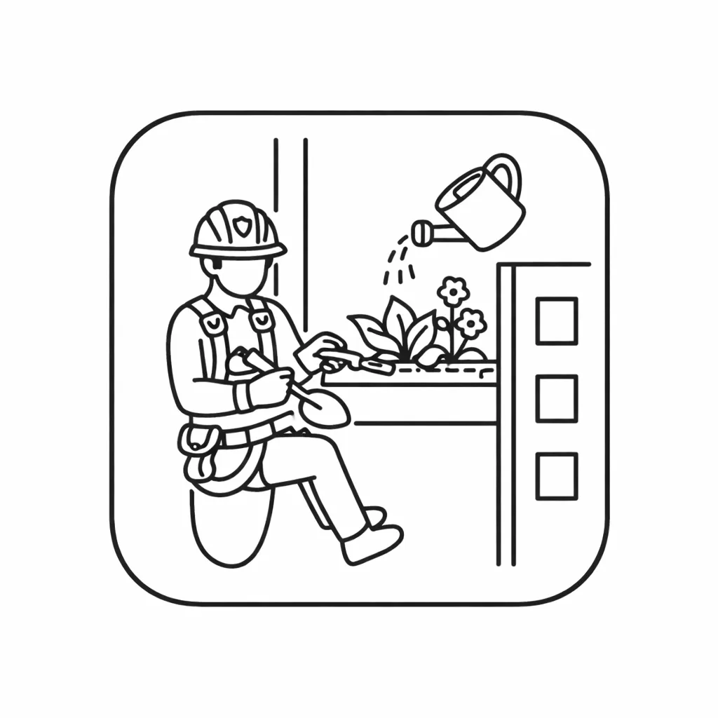 Specialist rope access maintenance for inaccessible gardens and green walls on high-rise buildings.